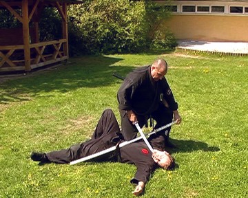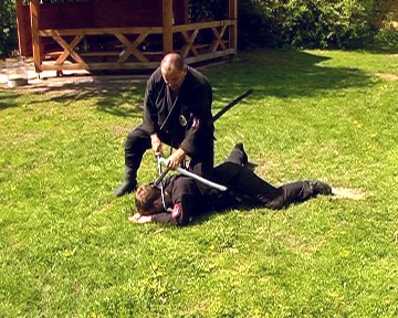 Danach unterrichtete Wolfgang Gröger eine weitere Seminareinheit in Bujinkan-Budotaijutsu/Ninjutsu. Zusammen mit seinem Meisterschüler Harald Haider demonstrierte er Techniken aus der Kukishinden-ryu, einer der 9 ehemaligen Samurai- und Ninja-Schulen, die im heutigen Bujinkan-Budotaijutsu unter Großmeister Dr. Masaaki Hatsumi aus Japan vereint wurden.