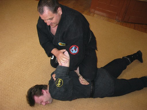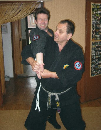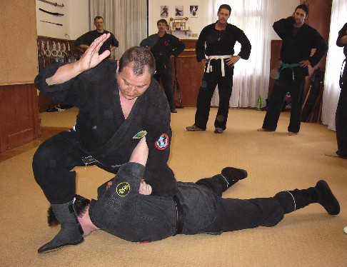 Am 24.04.2004 konnten die Mitglieder der Asian Combat Academy ihren Meisterlehrer Shihan Wolfgang Gröger (zweifacher Träger des 10. Dan) in Mylau begrüßen. Zusammen mit seiner Frau Ingeborg und seiner Enkeltochter Tina Christiansen war er wieder einmal ins schöne Vogtland gekommen, um am Fuße der Götzschtalbrücke (größte Ziegelsteinbrücke der Welt) einen Lehrgang in seiner Königsdisziplin dem Bujinkan-Budo-Taijutsu abzuhalten. Gröger ist als einer der höchstgraduiertesten Budo-Allrounder der Welt für seine hochwertigen Seminare bekannt. So reisten Kampfsportler aus Schweinfurt und Zwickau nach Mylau, um von seinem unschätzbaren Erfahrungsreichtum zu profitieren und ihre Fertigkeiten in einer Kampfkunst zu verbessern, deren Umfang so gewaltig ist, dass ein Menschenleben nicht ausreicht, um sie vollständig zu erlernen. Angefangen beim Bewegen im Gelände, waffenlosem Nahkampf, Umgang mit unzähligen Hieb- und Stichwaffen, Schusswaffenausbildung, Heilkunde, Meditation und vieles mehr gehören in das Gebiet dieser Ausbildung. Dieser Umfang lässt sich leicht erklären, wenn man sich mit der Entstehung dieser einzigartigen Kampfkunst auseinander setzt. Im mittelalterlichen Japan tobten viele Kriege unter den verfeindeten Fürstentümern um die Herrschaft über ganz Japan. Viele Schlachten wurden geführt und viel Blut vergossen. Aber es gab noch eine andere Form des Krieges, der in dieser Zeit geführt wurde. Spionage, Intrigen, Meuchelmord, Stiftung von Verwirrung und Aufruhr waren in der Regel die Aufgaben kleiner Elite-Truppen, deren Existenz und Ausbildung so geheim waren, dass viele nur eins über sie wussten: "Ninjas" die furchtlosen Dämonen, die unausweichlich den Tod bringen. In Wirklichkeit waren Ninjas natürlich keine Dämonen. Es waren Familienclans, die ihr Wissen von Generation zu Generation weitergaben, ohne es einem Außenstehenden zugänglich zu machen. Diese Clans bildeten sich zu den gefürchtesten Elite-Kämpfern des früheren Japan aus. Da niemand etwas über sie wusste, sie aus dem nichts auftauchten und wieder verschwanden, wurden ihnen bald übermenschliche Kräfte zugesprochen. Diesen Aberglauben verstärkten die Ninjas durch Einsatz von Dämonenmasken und Einsatz von geheimen Werkzeugen, die ihnen beispielsweise halfen an einer senkrechten Mauer schnell empor zuklettern. Natürlich versuchten viele hinter das Geheimnis dieser Kämpfer zu kommen und sich diese zu Nutze zu machen. Die japanische Lebensart gebot ehrenhaftes Verhalten. Ninjas übernahmen aber auch alle Aufgaben, die für den normalen Japaner ein Verstoß gegen seine Ehrenkodex gewesen wären. Bald schon wurden die Ninjas in die strategische Kriegsführung voll eingebunden. Dabei waren sie in der Regel stets auf sich allein gestellt. Sie bekamen eine Aufgabe, die sie unter allen Umständen zu erfüllen hatten. Nichts konnte sie daran hintern. Die Erfüllung ihrer Mission war mehr Wert als ihr eigenes Leben. Natürlich mussten diese Elite-Kämpfer entsprechend auf ihre Aufgaben vorbereitet werden. Allein bei der harten Ausbildung kamen einige ums Leben, die einen Augenblick unachtsam waren. Andere starben während ihrer Missionen. Nur die Besten überlebten. Und so entwickelte sich die Kampfkunst in den verschiedenen Familien zu einer Kriegskunst für Einzelkämpfer, die alles beinhaltete, was zum eigenen überleben und zum Erfüllen gefährlicher Missionen notwendig war. Erst nach der Wiedervereinigung Japans unter der Herrschaft des Shogun (mächtigster Mann des mittelalterlichen Japans; Oberbefehlshaber der Streitkräfte) waren die Dienste der Ninjas überflüssig geworden. Viele Familien wurden verfolgt und getötet. Aber Ihre Kampfkunst überlebte die Jahrhunderte im Verborgenen. Erst mit Dr. Masaaki Hatsumi Sensei wurde die alte Kampfkunst für die Öffentlichkeit publik. Neun alte Schulen wurden als Ninjutsu und später als Bujinkan-Budo-Taijutsu von Hatsumi Sensei auf der ganzen Welt verbreitet. Heute sind viele Meister dieser einzigartigen Kampfkunst als Ausbilder für Polizei, Militär und Sicherheitsfachkräfte tätig. Natürlich hat die heutige Ausbildung genauso wenig wie die Ausbildungsziele mit dem alten Ninjutsu viel gemeinsam. Die Kampfsportler, die sich dieser Kampfkunst verschrieben haben, wollen einfach nur Spaß und Freude am Training haben. Ihren Körper fit halten und ihre Fertigkeiten ausbauen. Da es jedoch die alten Kampftechniken sind, die unterrichtet werden, müssen Anhänger des Bujinkan-Budo-Taijutsu auf Wettkämpfe verzichten. Ein Regelwerk zum "Entschärfen" der Techniken für Wettkampfbedingungen würde diese Kampfkunst zu sehr beschneiden. Mit Wolfgang Gröger haben die Mitglieder der ACA einen Meisterlehrer, der bereits weit über 40 Meistergrade in verschiedenen Nahkampfsystemen hat, vor einigen Jahren den 12. Dan in Goshin-Taijutsu verliehen bekam und inzwischen auch den 10. Dan in Bujinkan-Budo-Taijutsu aus den Händen seines direkten Lehrers Dr. Masaaki Hatsumi Sensei erhalten hat. Mit dem Lehrgang in Mylau stellte er sein Wissen und können wieder einmal den begeisterten Schüler zur Verfügung. Mit 15 Teilnehmern war das kleine Dojo der ACA gut gefüllt, und die Teilnehmer mussten beim üben schon etwas auf ihre Nachbarn achten. Gröger begrenzet den Lehrgang auf Techniken aus dem Ninja-Biken (Schwertkampf), einigen Techniken mit dem Hanbo (Stock ca. 90 cm) und dem Tai-Jutsu (waffenloser Nahkampf), dem Teilgebiet "San Kaku Jime" (Abwehr von Würgeangriffen). Zunächst übten die Teilnehmer Schwertschnitte und Stiche aus den verschiedenen Grundstellungen. Gröger machte deutlich, wie wichtig der richtige Körpereinsatz ist, um die Techniken effektiv auszuführen. Dabei zeigte er auch, wie der Griff des Schwertes als Waffe eingesetzt werden kann, um Schläge, Stöße oder Hebel auszuführen. Der letzte Teil gehörte der Abwehr von fliegenden Gegenständen mit dem Schwert. Gröger brachte zum üben kleine Kunststoffscheiben mit, die ein gefahrloses ü