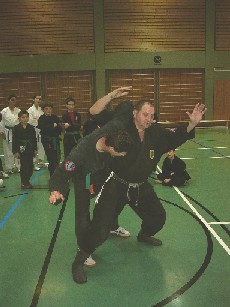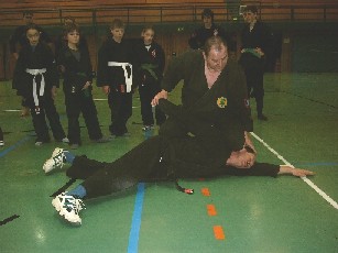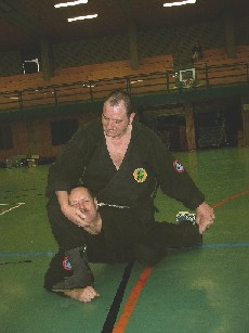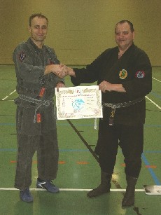 Wolfgang Gröger (rechts) überreicht Markus Wenzel die Urkunde zum 7.Dan Goshin-Taijutsu