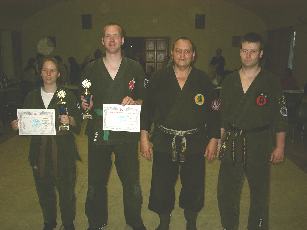 Im Anschluss an die Demonstrationen wurden die Sieger des Selbstverteidigungs-Wettkampfes mit den Pokalen geehrt. Die jeweils ersten Plätze belegten: Ludwig Bolay aus Bayreuth (8-10 Jahre/männlich), Lena Bolay aus Bayreuth (10-12 Jahre/weiblich), Florian Schneider aus Kulmbach (10-12 Jahre/männlich), Pascal Oesterli aus Freudenstadt (13-14 Jahre/männlich), Tina Christiansen aus Bayreuth (15-16 Jahre/weiblich), Christian Zunner aus Bayreuth (15-16 Jahre männlich), Sindy Partsch aus Mylau (20-30 Jahre/weiblich), Sebastian Geist aus Bayreuth (20-30 Jahre/männlich), Stefan May aus Bayreuth (31-42 Jahre/männlich) und Bruno Keller (ab 43 Jahre/männlich). An dieser Stelle nochmals herzlichen Glückwunsch den Siegern und auch allen anderen Wettkampfteilnehmern für die hervorragenden Leistungen. Damit fand der Abend bei einem Büffet (zubereitet wie es selbst Gourmet-Köche nicht besser könnten von Ingeborg Gröger) und Musik von „Teddy“ (bei dem es sich um keinen anderen als den Präsidenten der IAWO Wolfgang Gröger handelt, der bereits in jungen Jahren als Hobbymusiker sein Studium finanzierte und inzwischen als Geheimtipp für musikalische Unterhaltung gilt) einen gemütlichen Ausklang. Erst spät in der Nacht, nachdem bereits alle Gäste den Saal verlassen und die Aufräumarbeiten beendet waren, fand auch Wolfgang Gröger endlich seinen wohlverdienten Feierabend.