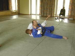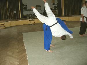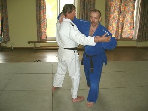 Gleichzeitig hatten die Teilnehmer des Judo-Seminars von Bruno Keller (1. Dan) und Mathias Wolert (1. Dan/Judo-Lehrer und Landes-Liga-Wettkampfrichter) die Gelegenheit, unter professioneller Anleitung Wurf und Bodentechniken zu erlernen und zu üben. Dabei kamen den Teilnehmern bereits vorhanden Kenntnisse der Fallschule und Wurftechniken zugute, sodass die beiden Seminar-Leiter das Niveau der übungen schnell anheben konnten. Dabei machten sie jedoch deutlich, dass Judo als sportlicher Wettkampf kaum noch gefährliche Techniken beinhaltet. Dementsprechend mussten sich die Teilnehmer beim üben etwas umstellen. Da Bruno Keller jahrzehntelange Wettkampferfahrung hat, konnte er zudem noch einige Variationen von Techniken vorzeigen, die den Teilnehmer beispielsweise für Ju-Jutsu-Wettkämpfe neue Möglichkeiten eröffneten.