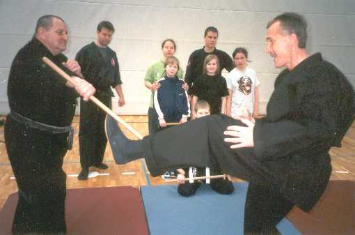 Zur Eröffnung des Goshin-Gröger-Dojo Netzschkau am 21.04.01, unter der Leitung von Sensei (Lehrer) Ralf Kürschner (2. Dan All-Style-Karate), demonstrierte Wolfgang Gröger Shihan 10.Dan Goshin-Taijutsu in einem mehrstündigen Lehrgang ein sehr praxisnahes, effektives und leicht verständliches Nahkampfsystem – GOSHIN-TAIJUTSU. Abweichend von vielen anderen Systemen ist Goshin-Taijutsu grundsätzlich frei von einer festgelegten Stilrichtung. Der Ausübende setzt in der Regel Grundtechniken ein, die seinem eigenen Stil entsprechen. Es ist also kein Umlernen eintrainierter Techniken nötig. Wichtig ist hierbei lediglich die Beachtung der zugrundeliegenden Prinzipien einer sicheren Selbstverteidigung sowie die korrekte und damit effektive Ausführung der jeweiligen Technik. Aufgrund der Prinzipien und der damit verbundenen Effektivität eignet sich Goshin-Taijutsu nicht für den sportlichen Wettkampf, bildet aber eine solide Grundlage der Verteidigung und ist auch von Kindern, Frauen und älteren Personen jederzeit erlern- und anwendbar. Mit dieser Eröffnungsveranstaltung hofft die noch im Aufbau befindliche Schule "Goshin-Gröger-Dojo" in Netzschkau, allen Interessenten eine vernünftige Möglichkeit der Selbstverteidigung unter Berücksichtigung der gesetzlichen Notwehrbestimmungen und der individuellen Persönlichkeit des Anwenders anbieten zu können. Ferner soll allen Freunden des Budosports ein regelmäßiges Training in Netzschkau ermöglicht werden. Der "Ur-Netzschkauer" Kürschner trainiert selbst seit über 10 Jahren unter der Leitung von Shihan Gröger in Bayreuth und besuchte viele Seminare in ganz Deutschland. Mit erfolgreichem Abschluß eines Trainerlehrgangs bei der IAWO, bei dem Fachkenntnisse, Lehrmethoden, rechtliche Grundlagen und Kenntnisse der Ersten Hilfe überprüft wurden, erhielt er eine gültige Trainerlizenz. Weitere Informationen: Ralf Kürschner: 0175 / 7 79 52 57 oder Sindy Partsch: 01 73 / 4 58 95 84 Ralf Kürschner |