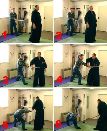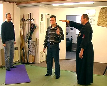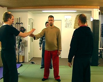 So stellt sich ein Teilnehmer zwischen zwei Andere und jeweils einer der Außenstehenden hebt einen Arm. Der in der Mitte Stehende versucht dann mit geschossenen Augen zu erahnen, auf welcher seiner Seiten der Arm gehoben wurde. Dieses Experiment kann auch ausgebaut werden, so dass mehrere einen Kreis um einen in der Mitte stehenden bilden. Der in der Mitte stehende muss dann wieder mit geschlossenen Augen in die Richtung deuten, in der ein Außenstehender seinen Arm gehoben hat. Die Trefferquote bei dieser übung ist erstaunlich hoch. Auch zeigt Gröger, dass es möglich ist einen Angriff von hinten zu erfühlen und dann entsprechend zu reagieren. Hier zeigte er beispielsweise einen beabsichtigten Würgeangriff und einen Schwertangriff von hinten.