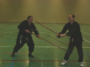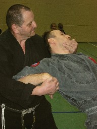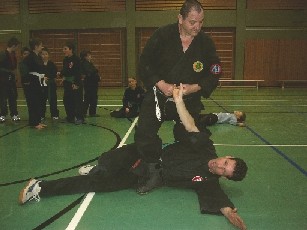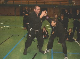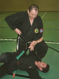 Wolfgang Gröger (rechts) überreicht Markus Wenzel die Urkunde zum 7.Dan Goshin-Taijutsu