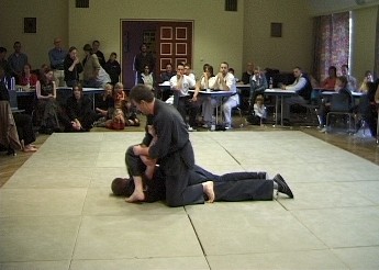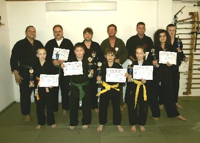 Im Anschluss an die Demonstrationen wurden die Sieger des Selbstverteidigungs-Wettkampfes mit den Pokalen geehrt. Die jeweils ersten Plätze belegten: Ludwig Bolay aus Bayreuth (8-10 Jahre/männlich), Lena Bolay aus Bayreuth (10-12 Jahre/weiblich), Florian Schneider aus Kulmbach (10-12 Jahre/männlich), Pascal Oesterli aus Freudenstadt (13-14 Jahre/männlich), Tina Christiansen aus Bayreuth (15-16 Jahre/weiblich), Christian Zunner aus Bayreuth (15-16 Jahre männlich), Sindy Partsch aus Mylau (20-30 Jahre/weiblich), Sebastian Geist aus Bayreuth (20-30 Jahre/männlich), Stefan May aus Bayreuth (31-42 Jahre/männlich) und Bruno Keller (ab 43 Jahre/männlich). An dieser Stelle nochmals herzlichen Glückwunsch den Siegern und auch allen anderen Wettkampfteilnehmern für die hervorragenden Leistungen. Damit fand der Abend bei einem Büffet (zubereitet wie es selbst Gourmet-Köche nicht besser könnten von Ingeborg Gröger) und Musik von „Teddy“ (bei dem es sich um keinen anderen als den Präsidenten der IAWO Wolfgang Gröger handelt, der bereits in jungen Jahren als Hobbymusiker sein Studium finanzierte und inzwischen als Geheimtipp für musikalische Unterhaltung gilt) einen gemütlichen Ausklang. Erst spät in der Nacht, nachdem bereits alle Gäste den Saal verlassen und die Aufräumarbeiten beendet waren, fand auch Wolfgang Gröger endlich seinen wohlverdienten Feierabend.