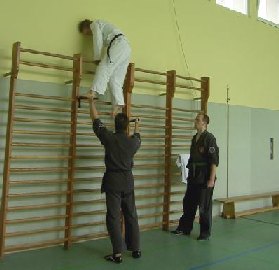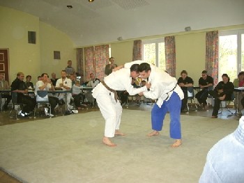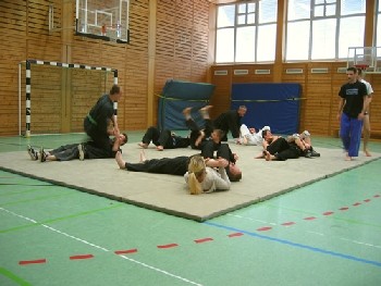 Gleichzeitig hatten die Teilnehmer des Judo-Seminars von Bruno Keller (1. Dan) und Mathias Wolert (1. Dan/Judo-Lehrer und Landes-Liga-Wettkampfrichter) die Gelegenheit, unter professioneller Anleitung Wurf und Bodentechniken zu erlernen und zu üben. Dabei kamen den Teilnehmern bereits vorhanden Kenntnisse der Fallschule und Wurftechniken zugute, sodass die beiden Seminar-Leiter das Niveau der übungen schnell anheben konnten. Dabei machten sie jedoch deutlich, dass Judo als sportlicher Wettkampf kaum noch gefährliche Techniken beinhaltet. Dementsprechend mussten sich die Teilnehmer beim üben etwas umstellen. Da Bruno Keller jahrzehntelange Wettkampferfahrung hat, konnte er zudem noch einige Variationen von Techniken vorzeigen, die den Teilnehmer beispielsweise für Ju-Jutsu-Wettkämpfe neue Möglichkeiten eröffneten.