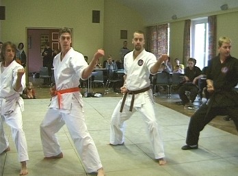 Die Kulmbacher übungsgruppe unter Leitung von Oliver Gack (5. Dan), einer der ältesten Meisterschüler von Wolfgang Gröger, demonstrierte All-Style-Karate der hohen Schule. Dabei zeigten sie in einer kurzen aber sehr beeindruckenden Vorführung, die Vielseitigkeit der Techniken auch in Verbindung mit Waffenkampf.