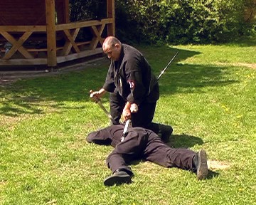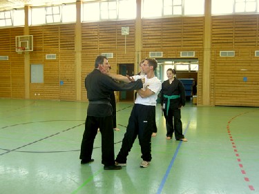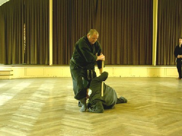 Danach unterrichtete Wolfgang Gröger eine weitere Seminareinheit in Bujinkan-Budotaijutsu/Ninjutsu. Zusammen mit seinem Meisterschüler Harald Haider demonstrierte er Techniken aus der Kukishinden-ryu, einer der 9 ehemaligen Samurai- und Ninja-Schulen, die im heutigen Bujinkan-Budotaijutsu unter Großmeister Dr. Masaaki Hatsumi aus Japan vereint wurden.