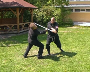 Bei Harald Haider lernten die Teilnehme typische Schwerttechniken (Kenjutsu) der früheren Ninja. Im Anschluss waren übungen mit dem Langstock (Bo) und waffenloser Straßenkampf Seminarinhalte seiner Unterrichtseinheiten.